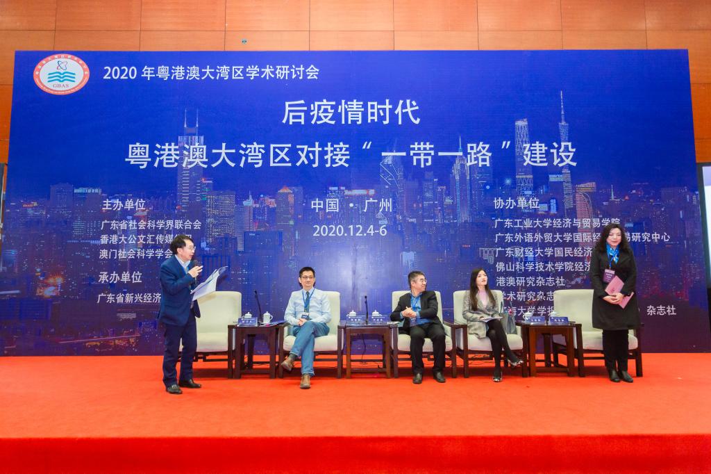 2020年12月4-6日,由广东省社会科学界联合会、香港大公文汇传媒集团和澳门社会科学学会主办的“2020年粤港澳大湾区学术研讨会”在广州白云国际会议中心举行,本次会议主题为“后疫情时代粤港澳大湾区对接‘一带一路’建设”。此次论坛具体由广东省新兴经济体研究会承办,广东外语外贸大学国际经济贸易研究中心与其它多个机构共同协办。来自国务院港澳办港澳研究所、中国社会科学院、中山大学、澳门大学、澳门城市大学、上海财经大学等国内50多所大学、研究机构和企业,与会代表总共150余人。新华网、人民网、中国国际广播台、中国社会科学报、南方日报、经济日报、学术研究杂志社和河海大学学报杂志社等10多家新闻媒体参与报道。本次研讨会分为开幕式、主旨演讲、主题论坛和分论坛。