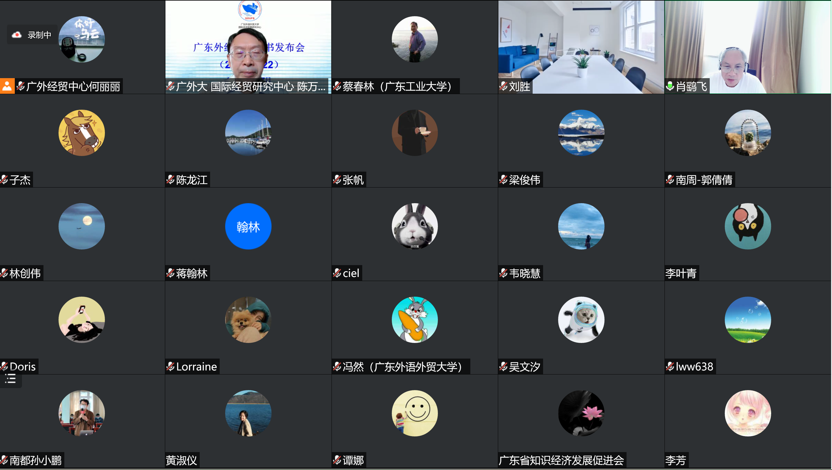 2022年9月17日上午,我中心主编的《广东外经贸蓝皮书·广东对外经济贸易研究报告(2021~2022)》在线上举行发布会。发布会邀请到广东工业大学蔡春林教授,我校副校长何传添教授、肖鹞飞教授、李未无教授、陈龙江教授,以及我中心主任陈万灵教授、副主任刘胜副教授;与会人员还有中国社会科学报、中国经济导报、南方都市报、南方日报、信息时报、中国经营报、中国企业报、21世纪经济报道等媒体的领导和记者;同时,蓝皮书部分作者参加了发布会。会议由我中心主任陈万灵教授主持。