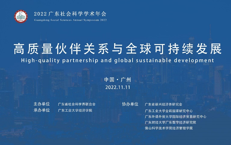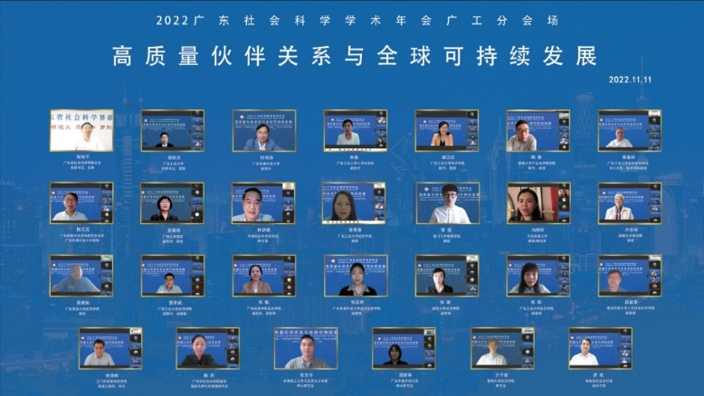 11月11日,由广东省社会科学联合会主办、广东工业大学经济学院承办的“2022广东社会科学学术年会分会”在线上成功举办。本次会议以“高质量伙伴关系与全球可持续发展”为主题,由广东外语外贸大学国际经济贸易研究中心协办。来自广东省社科院、中山大学、华南理工大学、暨南大学、广东海洋大学、广州航海学院、南方科技大学、以及广东省各地政府及研究机构的代表共计200余人参会。