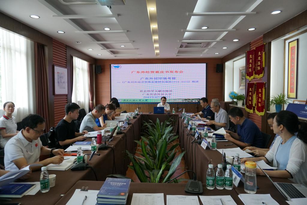2019年7月13日上午,在我校广东国际战略研究院会议室,我中心主编的《广东外经贸蓝皮书·广东对外经济贸易发展研究报告(2018~2019)》举行发布会。出席发布会的专家有广东外语外贸大学肖鹞飞教授,广东外语外贸大学经济贸易学院李未无教授,广东外语外贸大学高等教育研究中心主任陈万灵教授,我中心主任刘继森教授以及副主任刘胜副教授;与会人员还有来自中国新闻社、中国社会科学报、中国经济导报、中国经营报、中国企业报、香港商报广东新闻中心、21世纪经济报道、信息时报、南方日报等媒体的领导和记者;同时,蓝皮书部分作者参加了发布会。发布会由我中心主任刘继森教授主持。